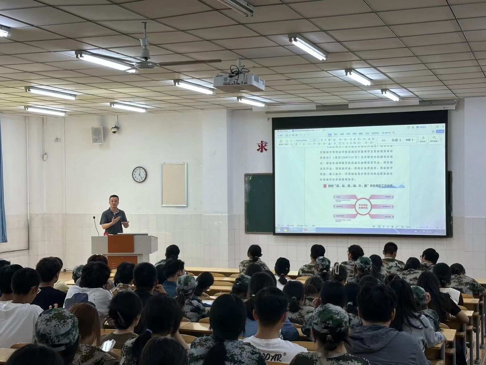 宣讲会上,原老师从国家资助政策体系、我校学生资助工作体系、兵役资助政策三个方面向新生同学们讲解了资助政策。详细讲解了国家助学贷款、国家奖助学金、金融征信知识、防诈骗教育等内容,提高学生诚信意识、金融意识、法律意识,帮助学生树立正确的消费观、荣辱观和价值观。