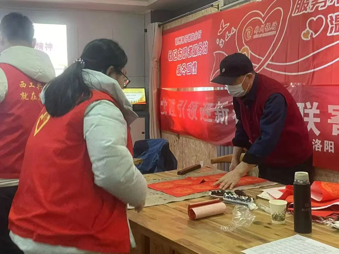 24CIMA02班的毛新玥同学利用寒假时间参与社区组织的春节写对联社会实践服务,为社区居民带来了别具一格的文化体验。在活动筹备阶段,毛新玥便与社区工作人员一同忙碌,精心布置场地,为活动顺利开展做足准备。活动当日,书写者们笔走龙蛇,毛新玥则在旁协助整理,还热情地为居民讲解对联的文化内涵。活动结束后,她又积极参与场地清理和活动总结。通过此次活动,锻炼了毛新玥同学组织协调和沟通能力。
