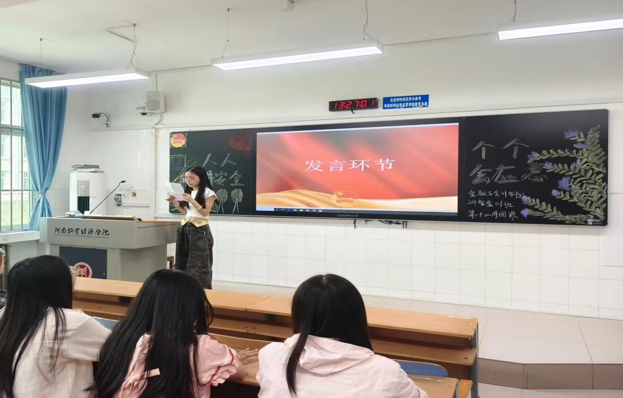 伴随着嘹亮的团歌声,团课正式开始。首先,团支书带领团员青年深入学习习近平总书记关于防灾减灾救灾重要指示批示精神,从思想层面深刻领会安全工作的重要意义,强化责任担当意识,为后续的学习内容筑牢思想根基。随后,就遇到极端天气、自然灾害等问题时如何自救进行了科普。通过图文并茂的展示、生动真实的案例,让团员青年们深入学习,并针对防灾减灾常识展开深入讲解,详细介绍在不同自然灾害场景下的应对方法,还分享了如何识别生活中的事故隐患,如老化的电线、堵塞的消防通道等。最后,各团支部组织团员青年进行讨论与交流,分享自己在生活中遇到的安全问题及解决办法,进一步加深对所学知识的理解与运用。