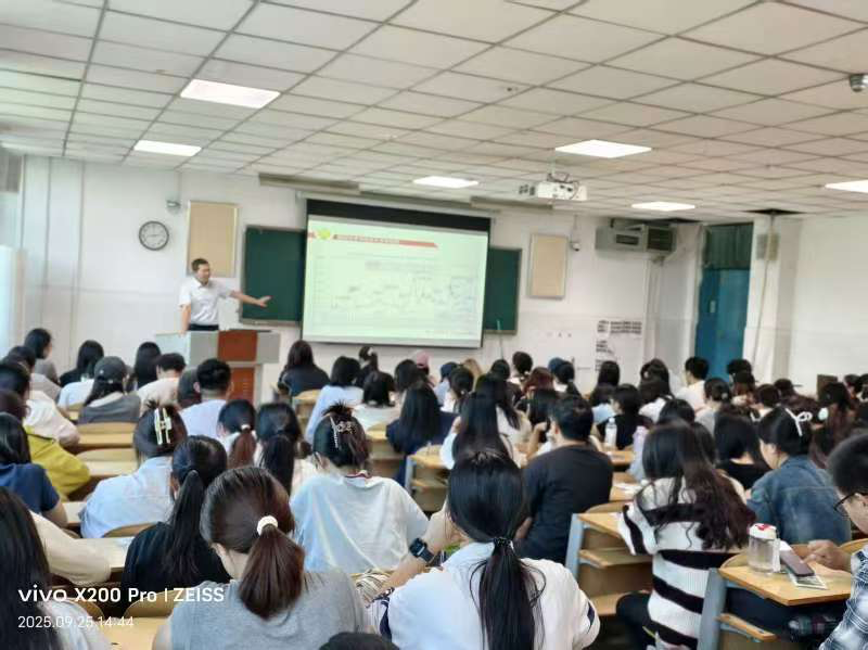 讲座伊始,时雷雷从中国经济发展历程与资本市场改革切入,系统介绍了中国多层次资本市场的构成与发展脉络。他重点讲解了全面注册制实施的背景与意义,指出中国资本市场进入市场化、法制化的新阶段,为大学生理解现代金融体系提供了宏观视野。