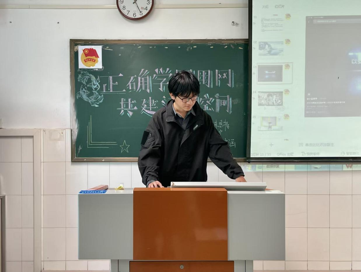 在嘹亮团歌声中,各班团课活动有序展开。活动伊始,各班团支书播放网络安全宣传视频,视频中的各类案例,引发同学们对网络安全问题的关注。接着,各班团支书带领团员青年深入学习习近平法治思想和关于网络强国的重要思想,明确了青年在维护网络安全、弘扬网络正能量的过程中应肩负的责任与使命。此外,各班团支书还结合案例讲解了网络诈骗、信息泄露等风险的防范要点。同学们围绕“不良信息辨别方法”“日常用网安全技巧”展开热烈讨论,现场气氛热烈,大家纷纷表示将从自身行为规范入手,主动抵御网络空间中的不良信息侵蚀,养成科学合理的用网习惯并带动身边人共同提升网络安全素养。