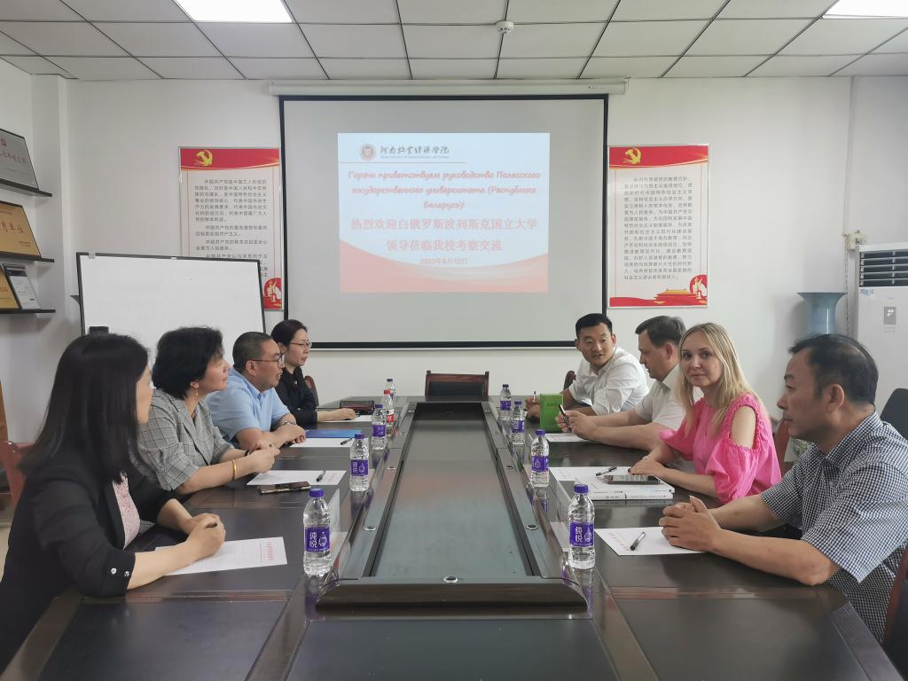2023年6月12日,白俄罗斯共和国波列斯克国立大学校长杜奈·瓦列里·伊万诺维奇一行4人莅临beat365官网考察交流,beat365官网院长黄良杰、副院长王培玲、邵翠丽和崔海红出席了交流活动。