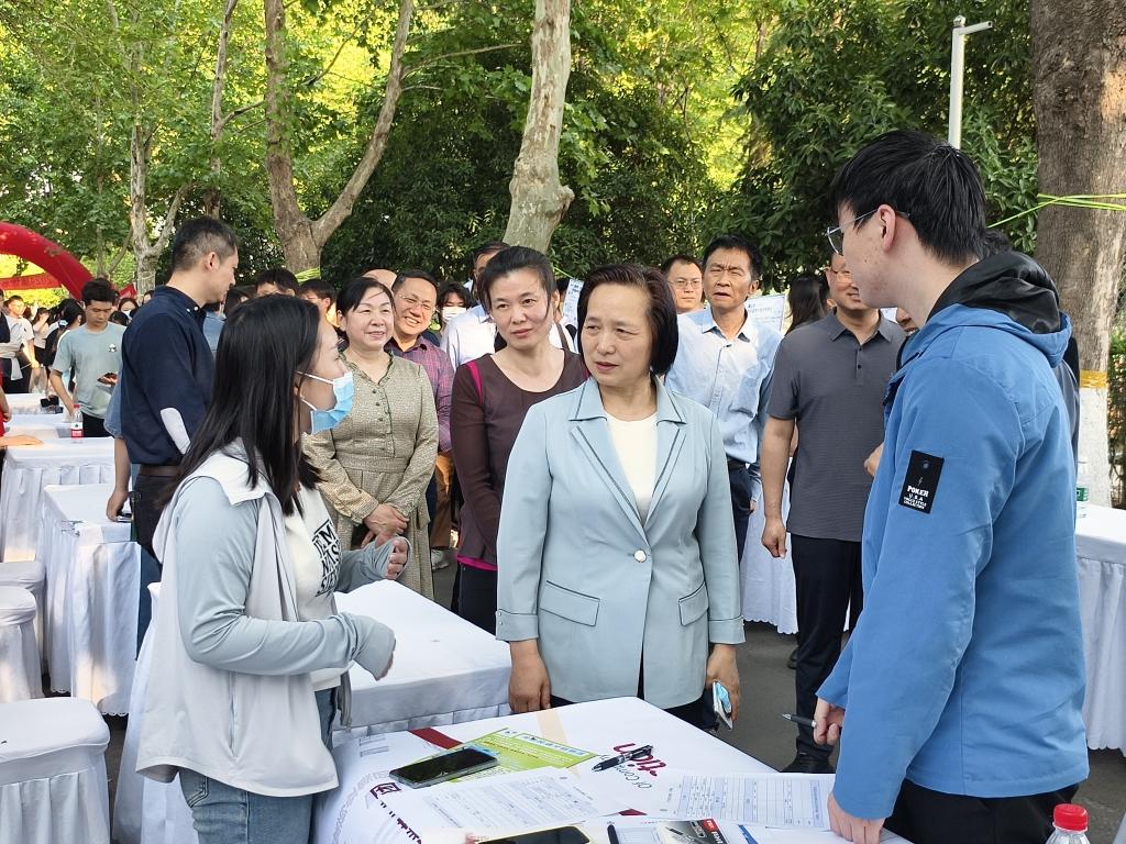 双选会现场,校长尹新明与参会用人单位进行深入交流,详细了解用人单位招聘需求和毕业生求职情况,并希望用人单位为毕业生提供更多的实习和就业机会,并在现场与求职毕业生亲切交谈,鼓励毕业生找准定位、脚踏实地、主动积极就业。学院主要领导、毕业班辅导员和学生志愿者在现场为求职学生提供就业指导和服务保障,共同助力毕业生顺利就业。