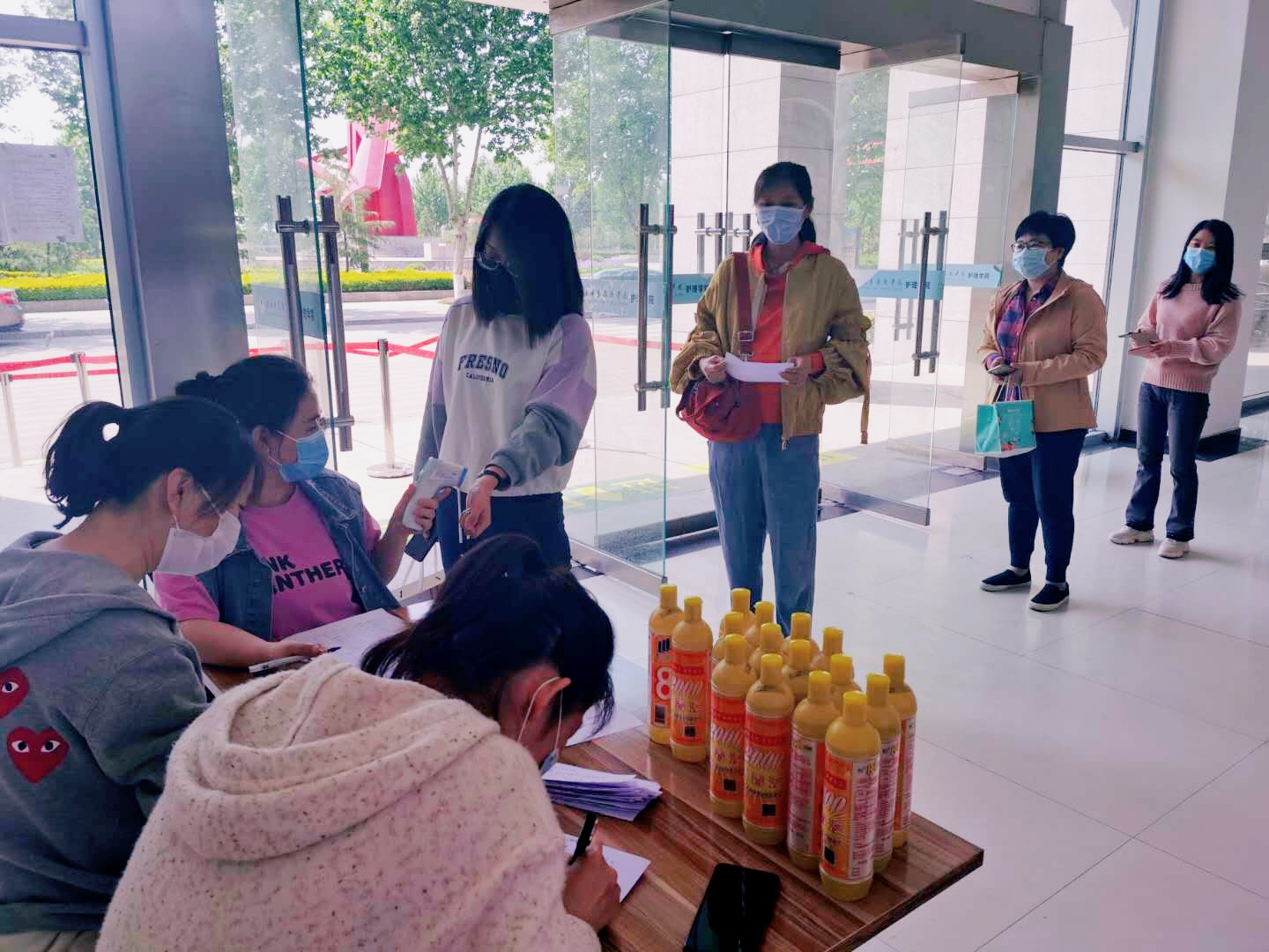 办公室错峰检查返校教职工的健康情况
