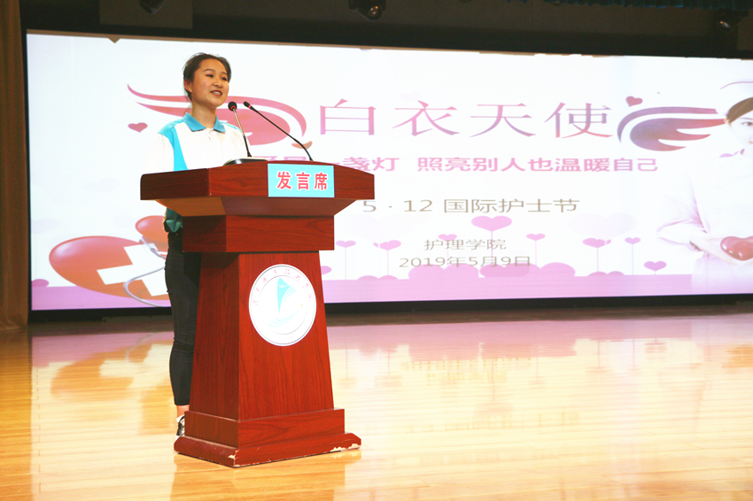 教师代表黄睿向即将走向护理工作岗位的白衣天使们致以节日的祝贺,向同学们提出了坚定护理工作信念、不断提升自身综合实力、发扬南丁格尔精神三点希望。学生代表康升向辛勤教育培养自己的各位老师表示了诚挚的感谢。她以自身经历为例,倡议同学们要以一颗同情的心和一双勤奋的手,以真心,爱心和责任心,为病人减轻痛苦。