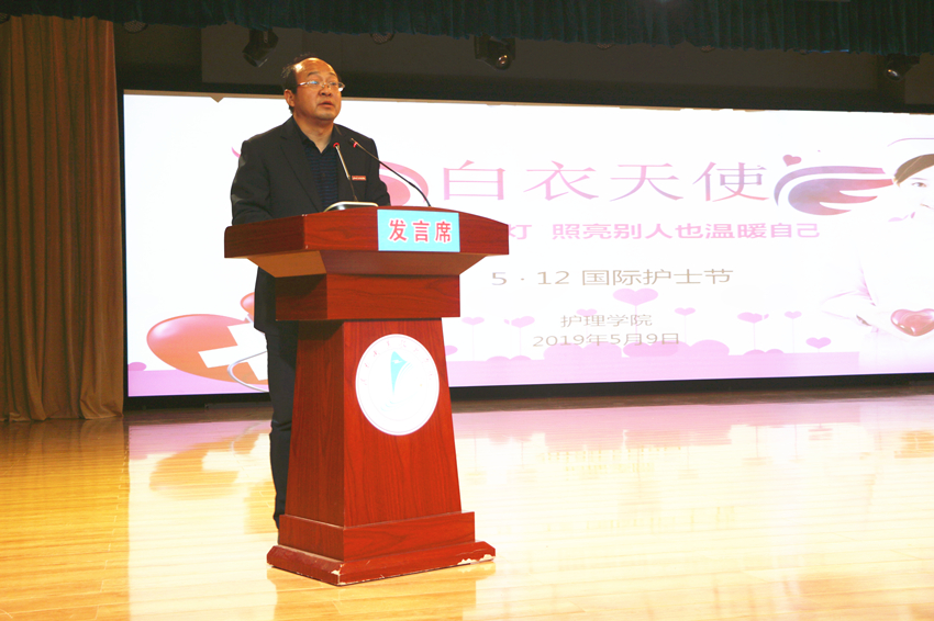 张成代表澳门网投唯一官网领导班子向辛勤工作在教学一线的全体师生表示崇高的敬意和节日的祝贺!向长期以来理解与支持澳门网投唯一官网工作的领导和部门表示衷心的感谢!他带领师生重温了国际护士节的历史渊源,讲述了护士职业的崇高性和重要性,回顾总结了澳门网投唯一官网近三年在教学、科研、技能大赛、实习就业等方面取得的成绩。对广大护生提出三点要求:一是要坚定信念,不为世俗所扰,坚信护士的学习、工作对社会具有深远的意义;二是要充分利用渭职院的优势,丰富自身学识和素养,提高自身竞争力,成为一个名副其实的社会精英;三是要不负韶华,不畏困苦,坚持播撒爱的种子,共同建设美好中国梦。