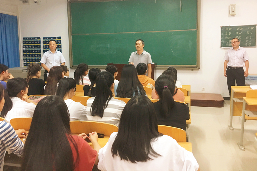 我院党总支书记吴运胜,院长张文信,副书记张春兴、吴亚飞,副院长王医平、王小峰,学生科科长李博,团总支书记白小萌,学生科副科长苏建军等分组深入新生班级当中,向新生介绍了澳门网投的办学历史和澳门网投骨干专业、省级一流护理专业的优势,询问了入校后的生活上的困难,对学生军训准备、生涯规划提出了建议,讲述了大学中规避校园贷、游戏成瘾等风险的方法。他们共同祝愿学生在大学里学会做人,健康成长,实现成才梦想。(撰稿:澳门网投唯一官网 王蓉 审稿:吴亚飞)