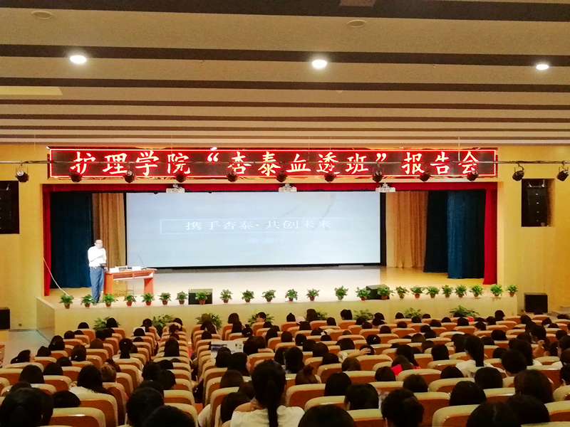 6月20日下午,澳门网投唯一官网在澳门网投图书馆报告厅举办了“杏泰血透班”报告会。杏泰国际贸易有限公司负责人、我院院长张文信、十余名专业教师和500余名学生代表参加了会议。报告会由张文信主持。