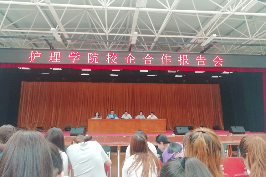 5月23日下午,澳门网投唯一官网在大学生活动中心召开了校企合作报告会。澳门网投对外合作交流合作处郑言老师,西安交通大学第一附属医院外联部主任庞贝贝、神经内科护士长李娜,笃志教育赵维老师及我院院长张文信出席了报告会。2019届全体毕业生参加了此次报告会,报告会由张文信主持。