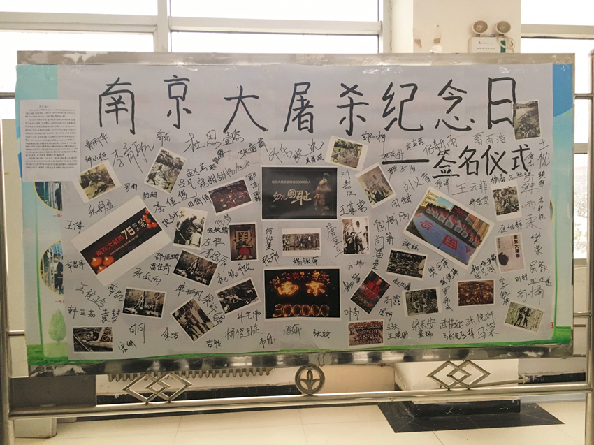 本次活动由我院学生会宣传部主办,活动共分四个环节。宣传部张舒盈在公共教学楼南楼208教室宣讲了纪念南京大屠杀死难者国家公祭日的背景。学生代表向南京大屠杀中的遇难者默哀。宣传部同学与学生们共同观看了纪录片《揭开历史档案,他拍摄下了南京大屠杀》。学生代表在南京大屠杀死难者国家公祭日签名海报上郑重地签名。