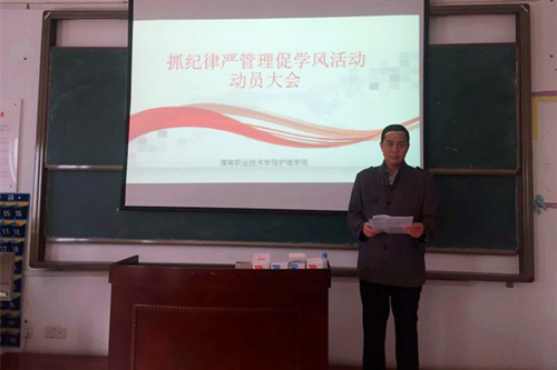 11月8日下午3点,澳门网投唯一官网在公共教学楼南楼202教室召开“抓纪律严管理促学风活动”动员大会。澳门网投唯一官网院长张文信、副院长王小峰、教学科科长李晓乾及全体一线教师参加此次会议,会议由李晓乾主持。