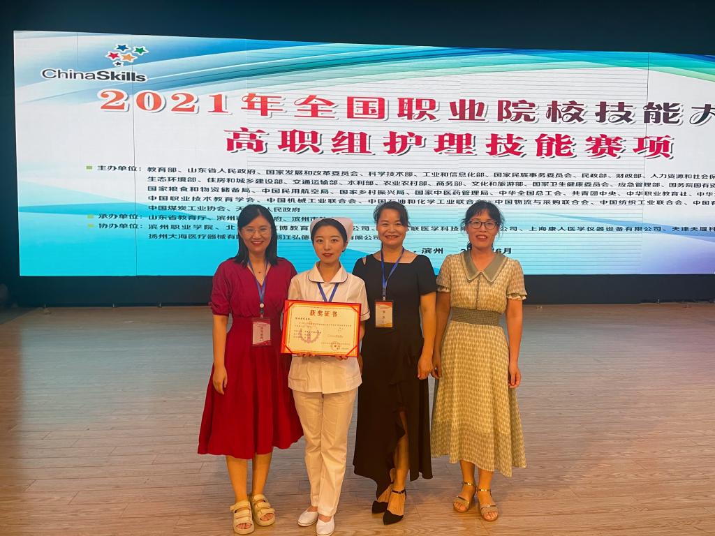 6月20日,2021年全国职业院校技能大赛高职组护理技能赛项在滨州职业学院落下帷幕。来自全国各省、市、自治区、计划单列市和新疆生产建设兵团的31支代表队,共31名选手同台竞技,切磋护理技能、展示专业风采。经过激烈角逐,共产生一等奖三项,二等奖六项,三等奖九项。澳门网投唯一官网杨嘉盈同学代表陕西省参赛,经过顽强拼搏,以总成绩第5名荣获二等奖。