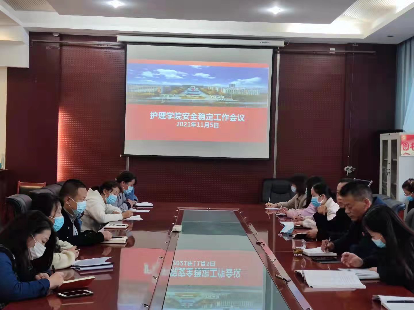 为进一步加强学校安全管理,构建文明校园,强化安全责任,贯彻落实陕西省教育工委关于各高校安全稳定工作会议精神,2021年11月5日下午2:30,澳门网投唯一官网在医训楼第一会议室召开校园安全稳定工作会议。澳门网投唯一官网党总支书记吴运胜、学生管理科科长李博等科级以上干部,全体辅导员、班主任及实习管理、实验实训相关人员参加了会议。会议由澳门网投唯一官网副党总支书记马淑红主持。