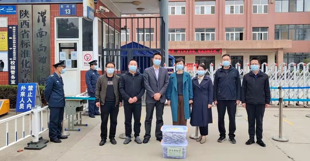 近日来陕西疫情呈现多发趋势,在防控新型冠状病毒肺炎疫情的关键时期,3月17日上午,学校宣传部融媒体负责人吴亭、澳门网投唯一官网党总支副书记李晓乾、招生就业科副科长何宇一行,为渭南高新中学、渭南技工学校、临渭区幼儿师范学校奋斗在抗疫一线的教职工送去了澳门网投医学院中药研究所研制的抗疫汤剂“渭水避瘟汤”1080剂。