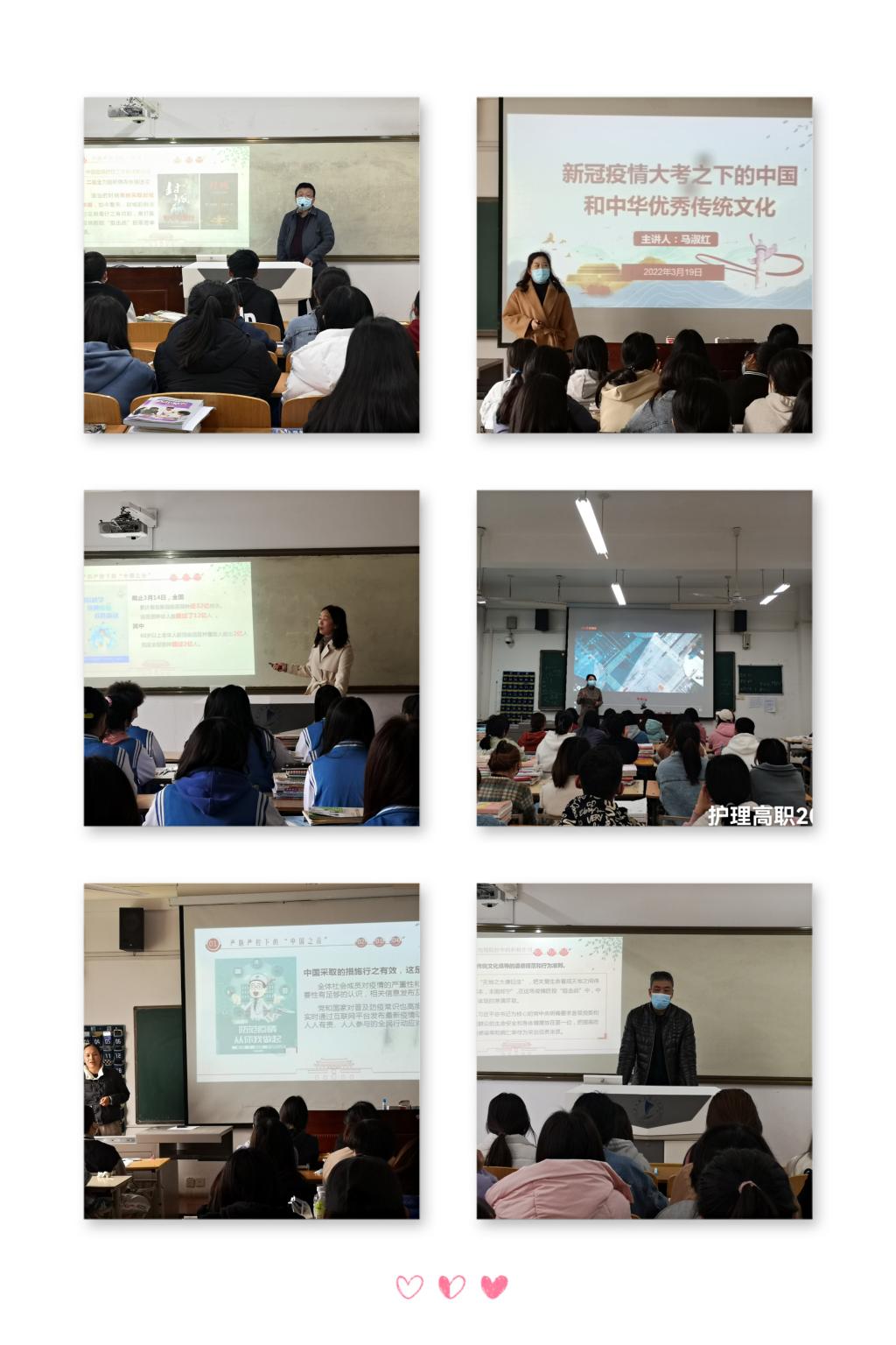 各位领导、老师用真实的数据和鲜活的事例,阐述了全球历史上发生的传染病疫情对社会发展格局的作用和本次新冠疫情形势对全球政治经济秩序、治理体系变革的重大影响,讲述了新冠肺炎疫情对全球经济社会运行造成的巨大冲击。结合学校推行的“宿舍三进”“课堂三巡”等学生管理工作,利用本次思政课主题班会向学生讲述了学校当前的防控举措,既是贯彻落实习近平总书记关于疫情防控工作的重要指示精神,落实省委教育工委、省教育厅和市委、市政府的决策部署,更是确保师生生命安全和身体健康的有力举措,让学生更加充分地理解学校的封控制度,并自觉践行。老师们热切祝愿新时代的青年大学生,要在疫情“大考”中汲取精神力量、涵养家国情怀。