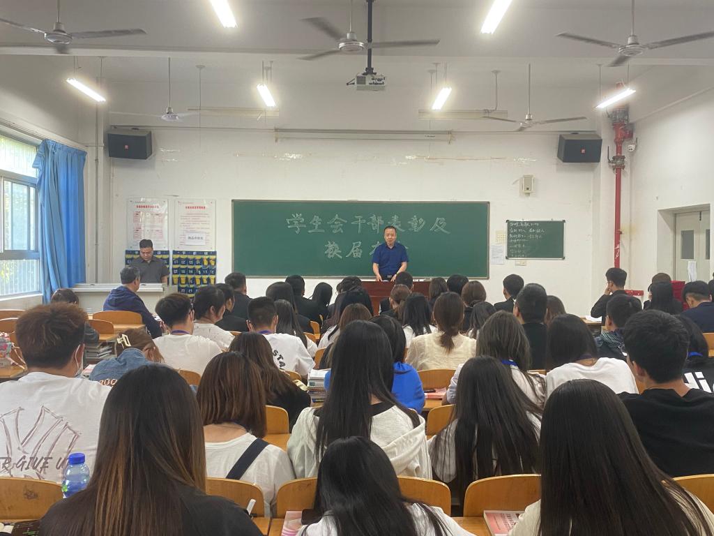 会上,学生会主席车鑫同学对2020-2021学年工作做总结报告,对其这一年担任职务中所获得的工作经验进行分享,介绍了学生会结构,宣读了学生会各部门工作职责,对新一届学生干部寄予希望。苏建军宣读了我院新一届学生会干部名单,为新任学生干部颁发了聘书,聘书代表了对他们工作的认可与肯定,也代表了他们的明天会更加辉煌!学生会副主席东旭博作为学生会新一届副主席上台发表了工作展望,感谢老师和上一届学生干部的栽培与指导,讲述自己的工作计划,向大家表达了决心。相信新一届的学生干部定会用汗水铸就荣耀,以实干笃定前行!李博要求学生会干部严于律己,努力学习,不断提高自身科学文化素养和道德修养,进一步发挥学生干部模范带头的作用,全心全意为同学服务。
