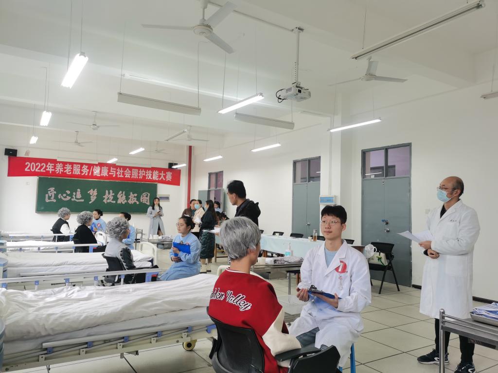 出席养老服务和健康与社会照护赛项比赛的领导和评委有:教务处副处长李新莉、养老服务技能赛项国赛三等奖指导教师任秋爱、内科教研室主任郭建民、外科教研室副主任郭宇森、解病教研室主任张小红和实训中心主任王渭华。选手们稳定发挥,各展风采,以熟练的操作和沉着的应变能力赢得了裁判的一致认可。裁判代表郭建民老师认为选手们操作规范娴熟,表现出对服务对象需求的高度关注,希望同学们在以后的学习和工作中能继续加强人文关怀和综合能力的提升。李新莉从赛场布置、选手表现、审计核分方面给予了比赛较高评价,她希望澳门网投唯一官网能继续抓好学生技能大赛这个有利抓手,推进教学改革和人才培养质量的提升,预祝澳门网投唯一官网在省赛和国赛场上能够披荆斩棘更上一层楼。