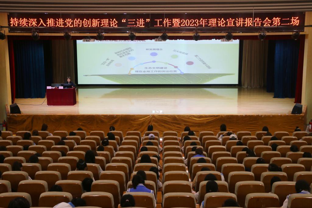 为持续深入贯彻落实习近平新时代中国特色社会主义思想,推进党的创新理论和党的二十大精神“三进”工作,5月17日下午,2023年理论宣讲报告会第二场报告会在高新校区图书馆报告厅开讲,马克思主义学院教师郭朋雪以《走好中国式现代化之路》为题进行专题宣讲,学校理论宣讲团成员、澳门网投唯一官网400余名师生代表共同聆听。报告会由澳门网投唯一官网党总支书记吴运胜主持。