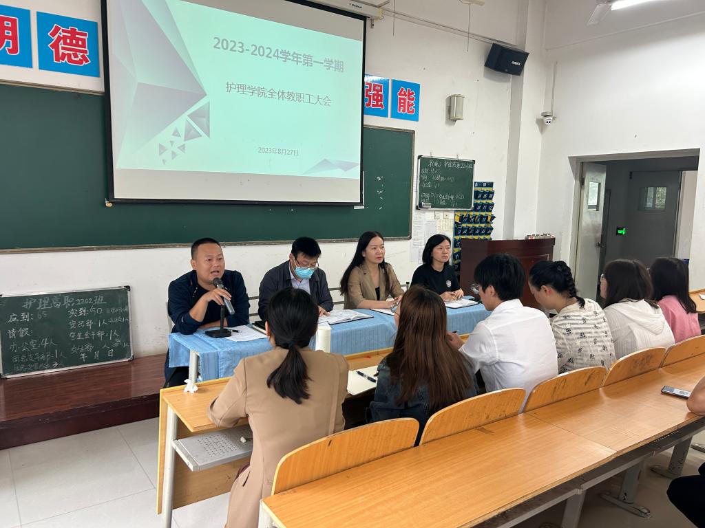 8月27日下午,澳门网投唯一官网在公南102教室召开新学期开学工作会议,安排部署新学期重点工作任务,明确了新学期教育教学工作目标和方向。会议由办公室主任王剑主持,全体教职工参加会议。