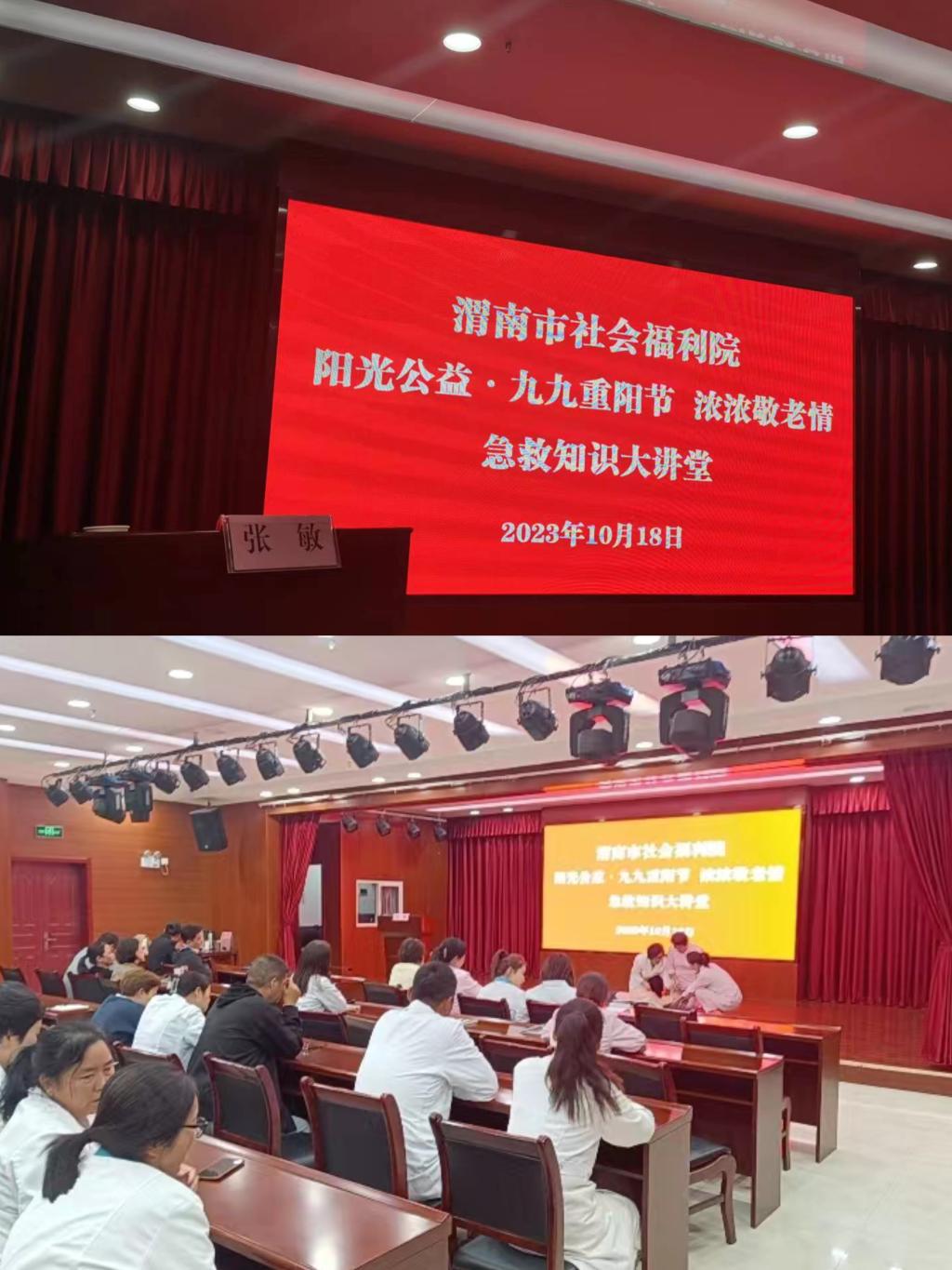 为弘扬敬老爱老的优良传统,丰富辖区老年人的精神文化生活,在九九重阳节来临之际,受渭南市社会福利院邀请,澳门网投澳门网投唯一官网教师张敏参加了“阳光公益·九九重阳节 浓浓敬老情急救知识”大讲堂活动,助力我院双高建设。她通过“心脏骤停的患者如何做心肺复苏?气道异物梗阻的患者如何救护?”等两部分为大家详细介绍了如何判断心脏骤停,心脏骤停后的胸外按压、开放气道、人工呼吸等方法及气道异物梗阻的原因、表现、海姆立克急救法的原理、操作方法等。为了让大家更好的掌握这些知识,让护理员切身体验操作的方法,张敏在现场给予详细、耐心的实操指导。