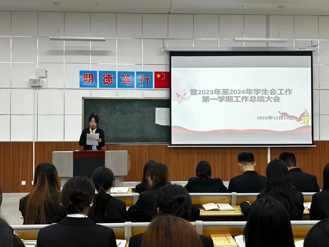 为回顾总结过去一学期学生会及相关部门的工作,深入剖析存在的问题,全面提升学生会工作能力,更好服务学生,澳门网投唯一官网于12月19日召开2023—2024届学生会第一学期工作总结大会。会议由主席团成员苏可心主持,澳门网投唯一官网全体学生会干部以及学生会代表参加。