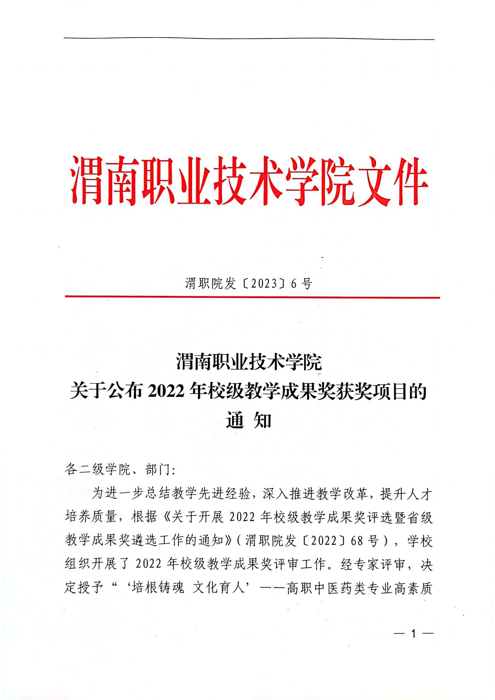 (1)获校级教学成果特等奖1项,并申报了省级教学成果奖:《医校整合,德技并修,多元评价:高职护理专业人才培养体系的创新与实践》。
