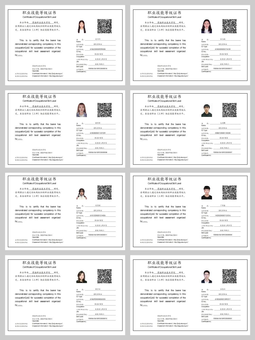 大力推进护士执业资格证等证书获取力度,积极组织学生考取各类等级职业证书。本年度护士资格考试通过学生557名,有85名学生在校内获取养老护理员培训证书,300余名学生参加急救培训并取得证书,130余名学生在校外各考试站点取得养老护理员、营养师等职业证书。