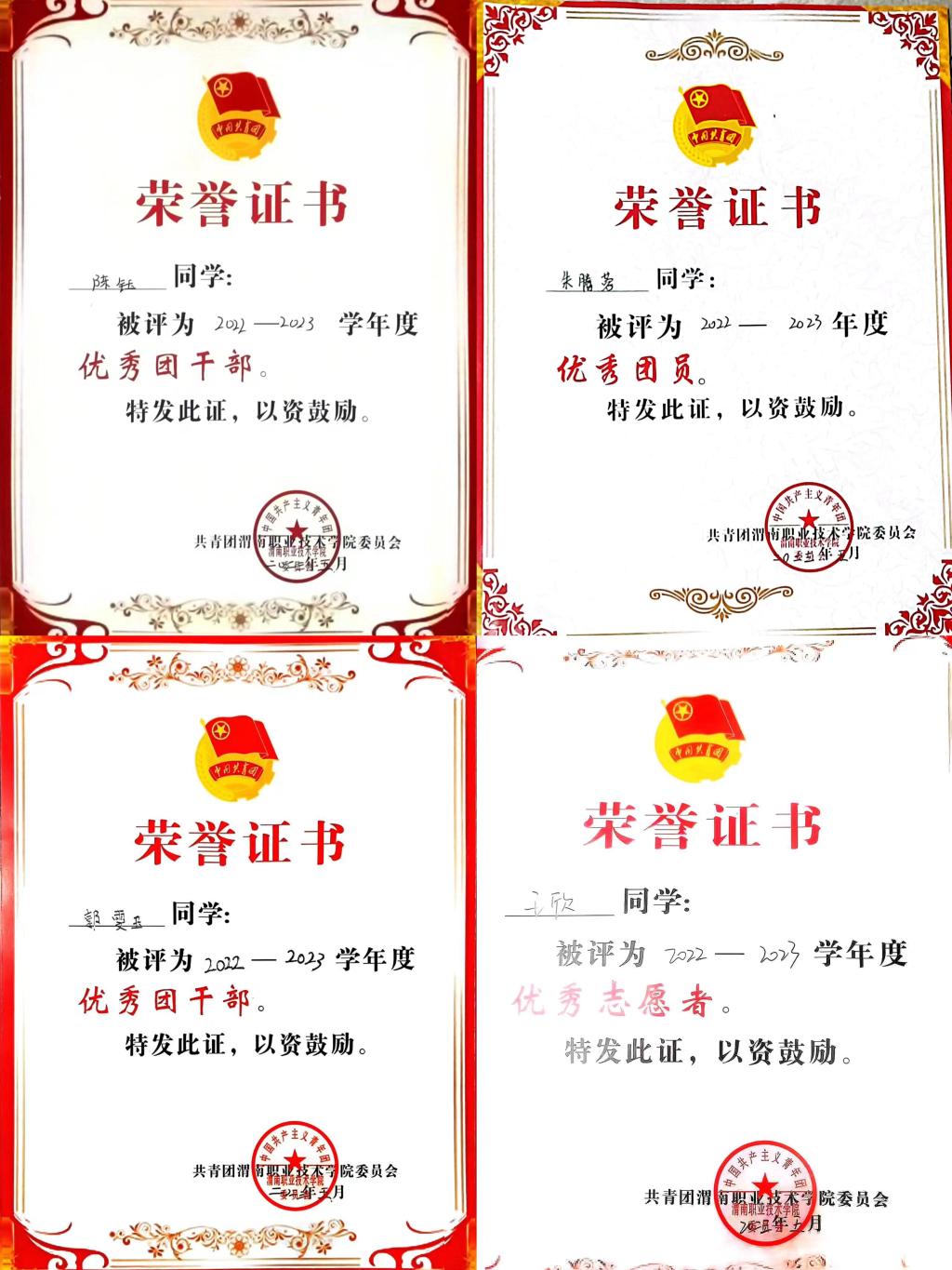 澳门网投唯一官网团总支被中共渭南市委精神文明建设指导委员会评为“最佳志愿服务组织”,被共青团渭南市委评为“渭南市五四红旗团支部(团总支)。护理高职2203班团支部等6个团支部获“五四红旗团支部”,郭瑞等47名师生获“优秀团干部”称号,张岚等100名同学获“优秀团员”称号,孙佳乐等14名同学获“优秀青年志愿者”称号。