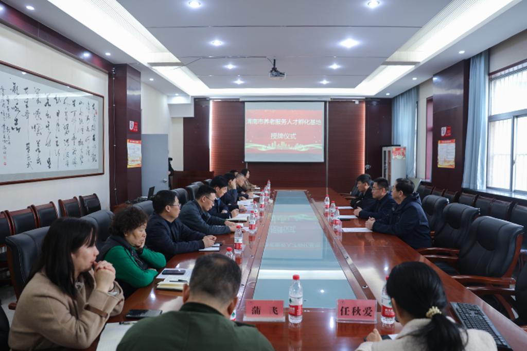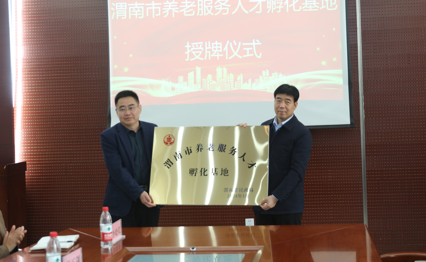 3月22日上午,“渭南市养老服务人才孵化基地”授牌仪式在澳门网投医训南楼第一会议室进行。学校党委副书记王录军,渭南市民政局四级调研员李锋、社会福利科科长杨志宏、科员杨凯及澳门网投医护两院负责同志,各相关部门负责人参加。会议由教务处魏恒处长主持。