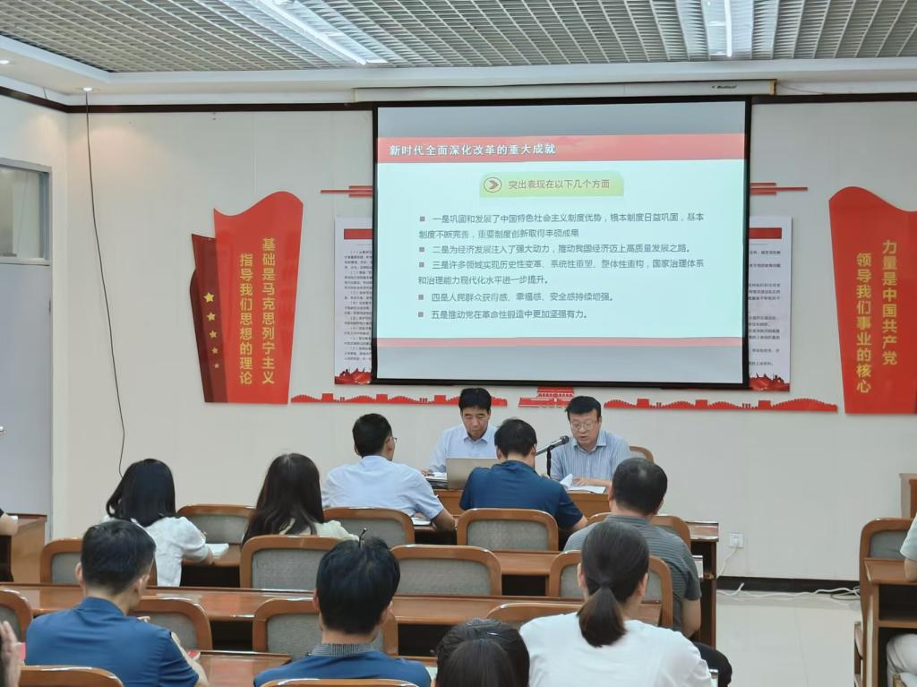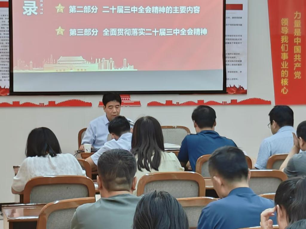 9月20日下午,学院党委副书记王录军为澳门网投唯一官网、教务处、招就处、工会和质评处全体党员宣讲了党的二十届三中全会精神。宣讲会由澳门网投唯一官网院长张成主持。