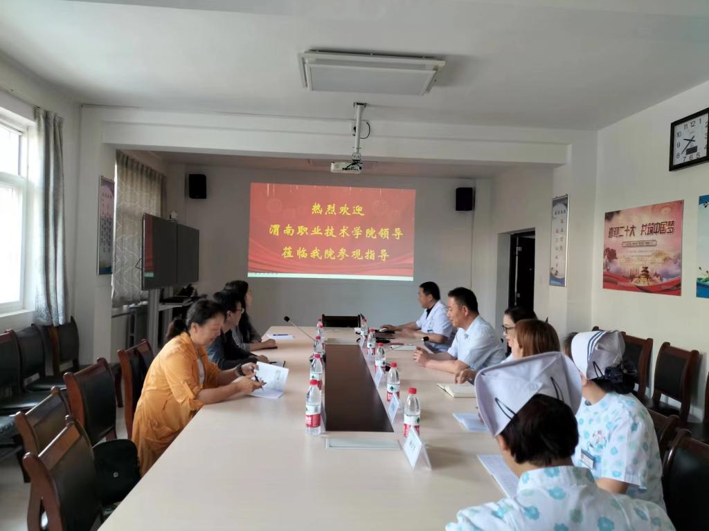 为贯彻落实2023届毕业生就业创业工作会议精神,深入推进访企拓岗促就业专项行动,积极对接企业用人需求,推进我院毕业生实习与就业工作,5月24日上午,澳门网投唯一官网澳门网投唯一官网院长张成、副院长吴亚飞、招生就业科副科长何宇、实习办负责人刘欣老师一行4人,赴通用环球中铁华州医院开展访企拓岗,洽谈院校合作事宜。