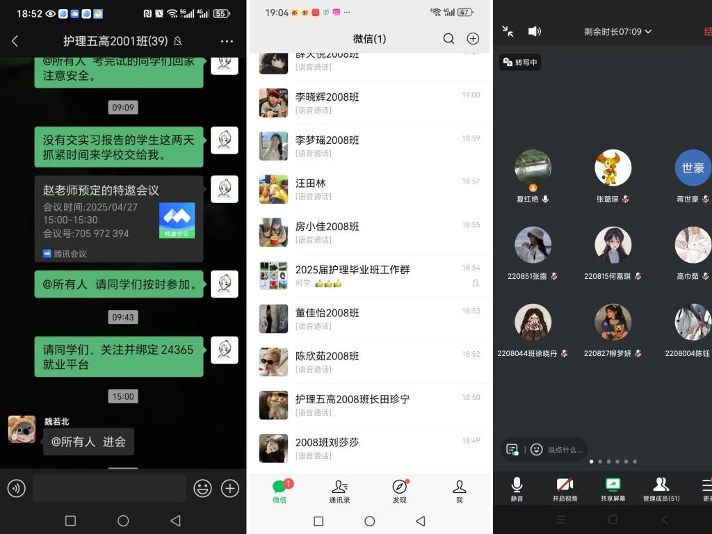 会上,各班辅导员、班主任组织学生认真学习高校毕业生就业创业政策,深入剖析当前护理行业就业形势,详细解读公立医院招聘情况,同时对医美机构、产后康复中心、专科医院等新兴领域的用人需求进行了全面分析。针对学生关心的简历制作、面试技巧等问题,通过案例分享、情景模拟、互动问答等形式进行详细指导。此外,班会还特别强调,鼓励学生树立正确就业观,积极把握基层医疗、养老护理等多元化就业机会,拓宽职业发展路径。