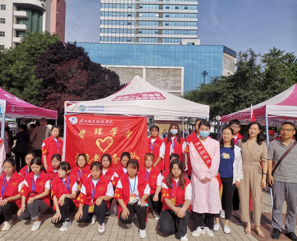 5月28日上午,由渭南市卫健委、市老龄办主办的“智慧助老”暨银龄行动志愿服务启动仪式在临渭区中心广场举行,澳门网投唯一官网副院长任秋爱,团总支书记白小萌,招就科副科长何宇带领二十名志愿者参加了此次启动仪式。