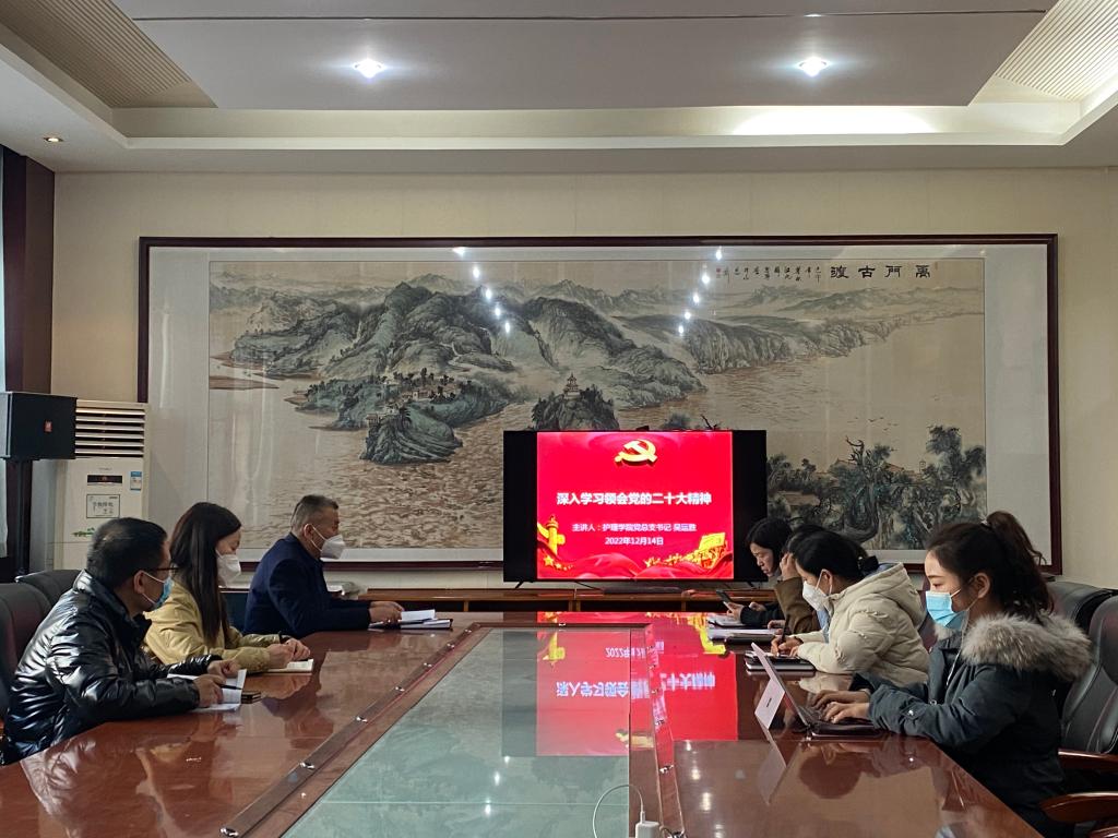 12月14日下午,澳门网投唯一官网党总支在医训楼第一会议室开展学习贯彻党的二十大精神主题宣讲会。宣讲会由澳门网投唯一官网党总支书记吴运胜作宣讲,不在校党员通过腾讯会议参加宣讲会。澳门网投唯一官网党总支副书记周梦花主持宣讲会。