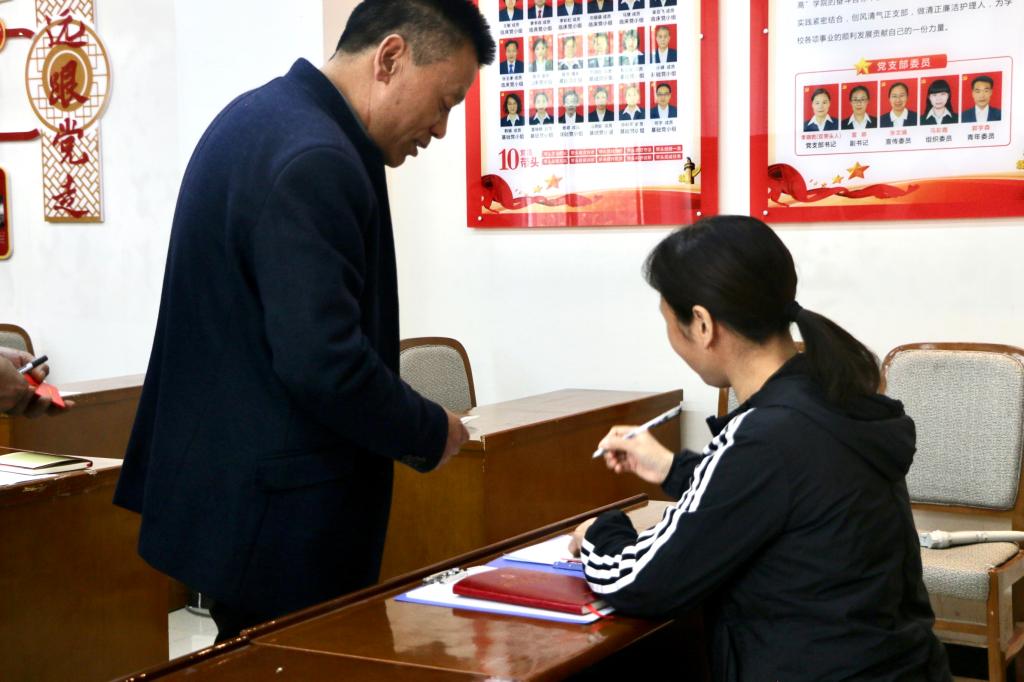 会议第三项,交纳党费。现场交党费,填写党费证、签字确认,每个环节都严肃认真。通过现场交纳党费,全体党员进一步增强党员意识,以强烈的“仪式感”进一步强化党员的“身份感”,使每一名党员时刻牢记自己的党员身份,时刻以党员的标准要求自己,工作中争先锋、做表率,为学院高质量发展提供强有力的保障。