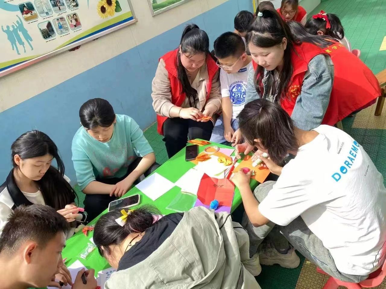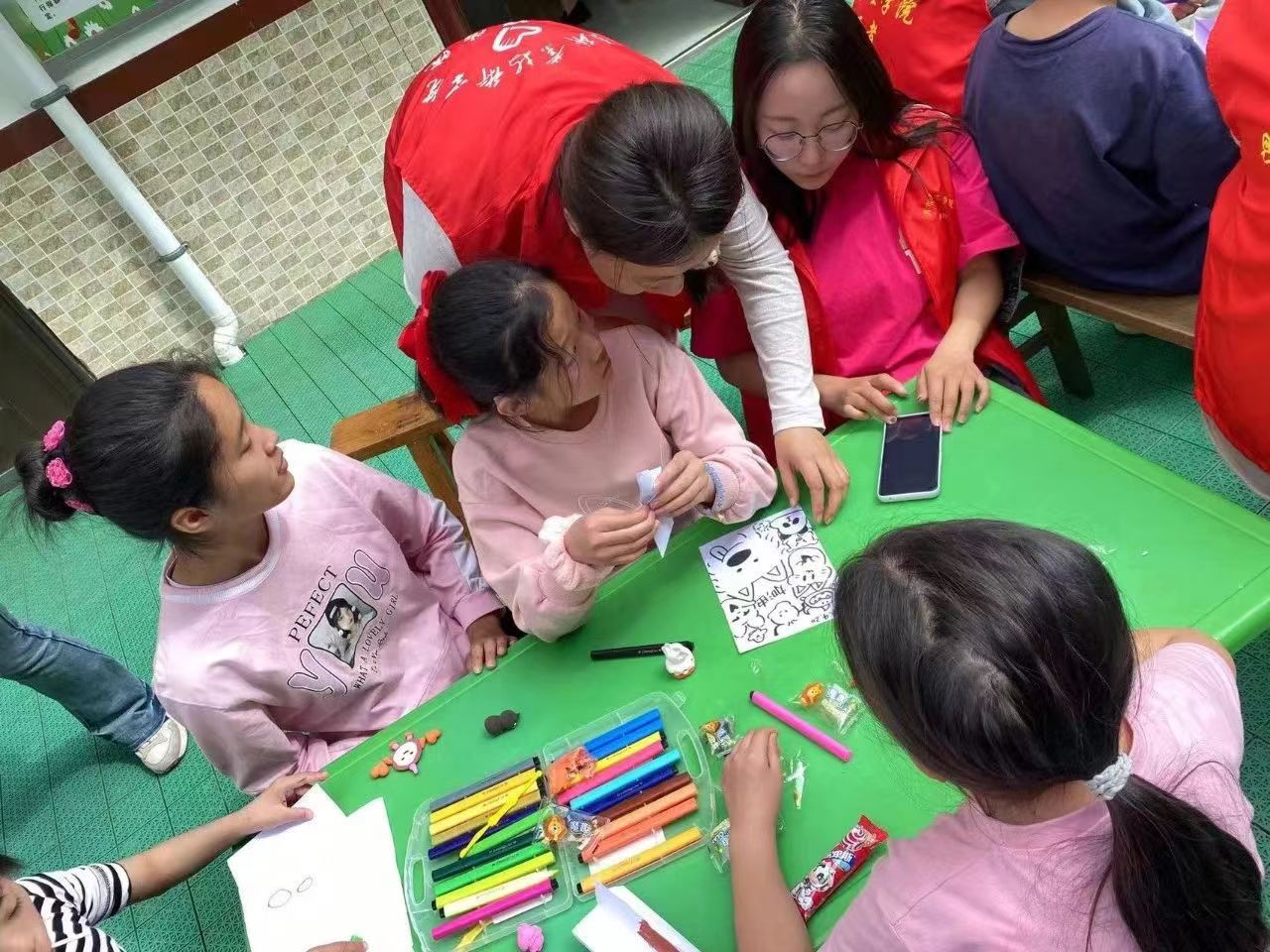 在现场,志愿者们根据孩子们不同的兴趣爱好,和孩子们一起开展绘画、做折纸、打乒乓等活动。虽然时间相处短暂,孩子们很快被志愿者们的热情所感染,放下拘束,与志愿者们打成一片,一时间,欢乐的气氛充满了整个校园。