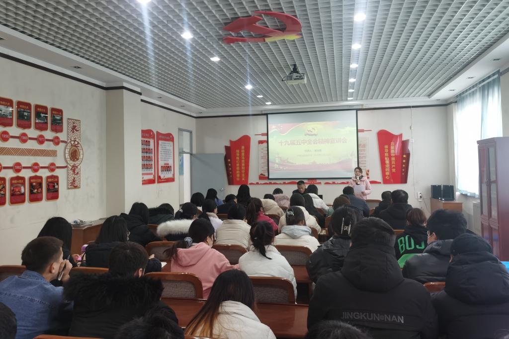 吴运胜以《学习贯彻党的十九届五中全会精神》为题,从《建议》的研究背景、形成过程和框架内容,阐述了党的十九届五中全会的重大意义;从深刻领会决胜全面建成小康社会的决定性成就,全面理解新发展阶段、新发展理念、新发展格局,准确把握“十四五”时期经济社会发展的方针原则、主要目标、重点任务、6个目标及9个2035年远景,始终坚持党的全面领导等五个方面,对党的十九届五中全会精神进行了全面宣讲和深入解读。他希望广大师生能深入领悟全会精神,并贯彻落实到实际工作当中。他要求各团支部书记及辅导员把会议精神传达给每一个学生,各教师代表把会议精神传达给本教研室老师,让全院师生掀起学习高潮,并深刻理解全会精神,贯彻落实于实际行动中。