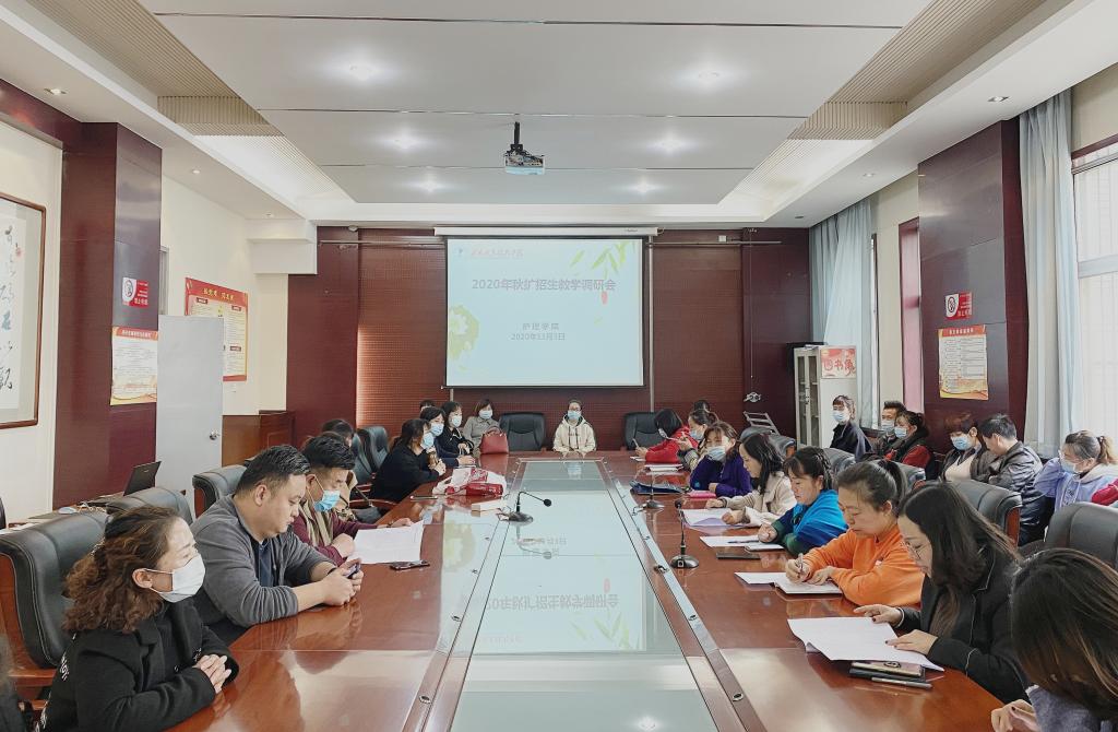 11月3日下午,澳门网投唯一官网在医训楼南楼第一会议室召开了2020年秋季扩招学生教学调研会。澳门网投唯一官网副书记马淑红、副院长任秋爱、教学科副科长王媛、教师代表孙会娟、麻佩佩以及2019级扩招学生参加了会议。会议由王媛主持。