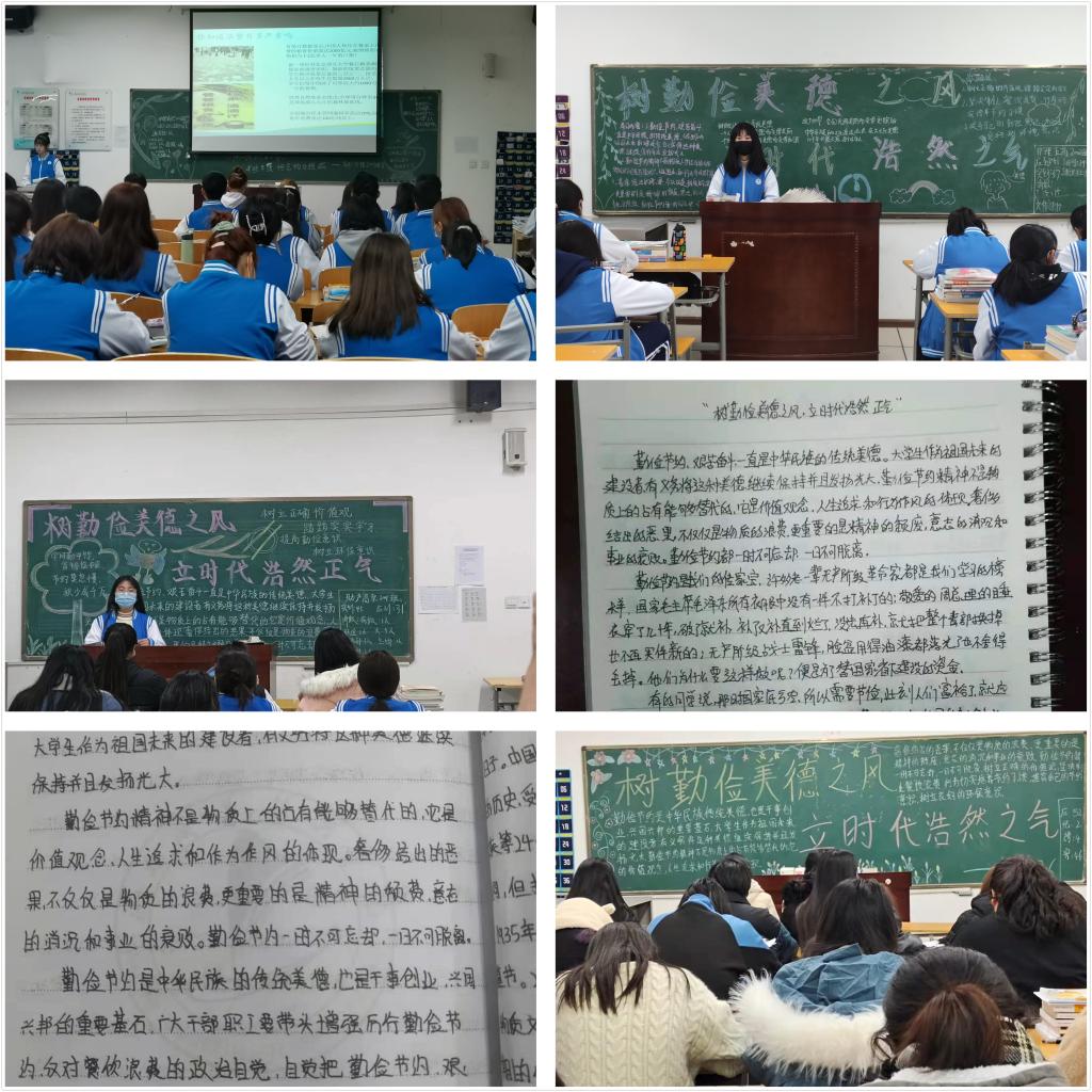 本次团课由团支书主讲。团支书带领班级学生学习了习近平总书记对制止餐饮浪费行为培养节约习惯作出的重要指示精神;带领学生观看了《一粒米的世界》《一粥一饭不易且重大》等视频,浏览了校园铺张浪费的图片,分享了伟大领袖毛泽东主席和周恩来总理勤俭节约的事迹。通过学习PPT、浏览视频和图片,广大学生认识到大学校园铺张浪费的普遍性和严重性,深刻体会到勤俭节约的重要性。护理高职2010班学生齐声诵读了明代朱柏庐的《夫子治家格言》:“一粥一饭,当思来处不易;半丝半缕,恒念物力维艰。”助产高职1901班学生邓佩琪分享了她的学习感悟。她认为,勤俭节约是中华民族的传统美德,是兴国兴邦的重要基石。作为大学生,我们要带头增强“厉行勤俭节约,反对餐饮浪费”的意识,自觉把勤俭节约、艰苦奋斗的理念内化于心,外化于行,从自身做起,珍惜每一顿餐饭,节约每一粒粮食,用良好的作风引领社会风尚。(撰稿:澳门网投唯一官网 王蓉 审核:李晓乾)