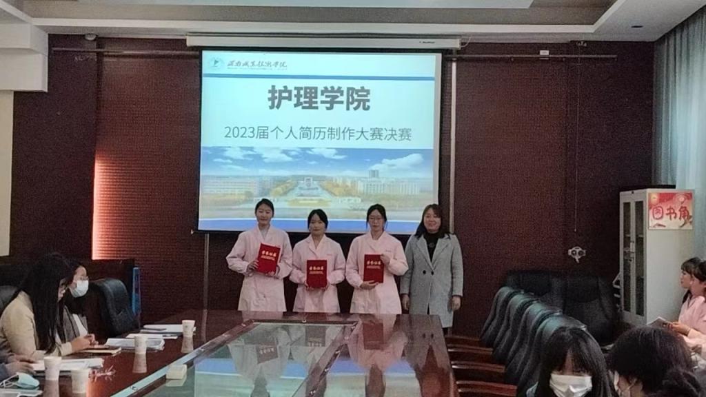 最后,辛梅老师对于简历制作提出几点建议:一是简历的内容要做到简洁,用凝练的语言恰到好处地展示出个人的优势与技能;二是简历中要杜绝低级的错误,比如出现错别字等情况;三是要把个人获奖证书复印件附在个人简历后面。夏红艳老师从当前高职院校就业形势、就业渠道以及简历制作的重要性出发,鼓励学生积极参与就业创业相关活动,认真学习护理专业技术技能,做好自身职业规划,为步入社会,成为一名优秀的医护工作者做好准备。