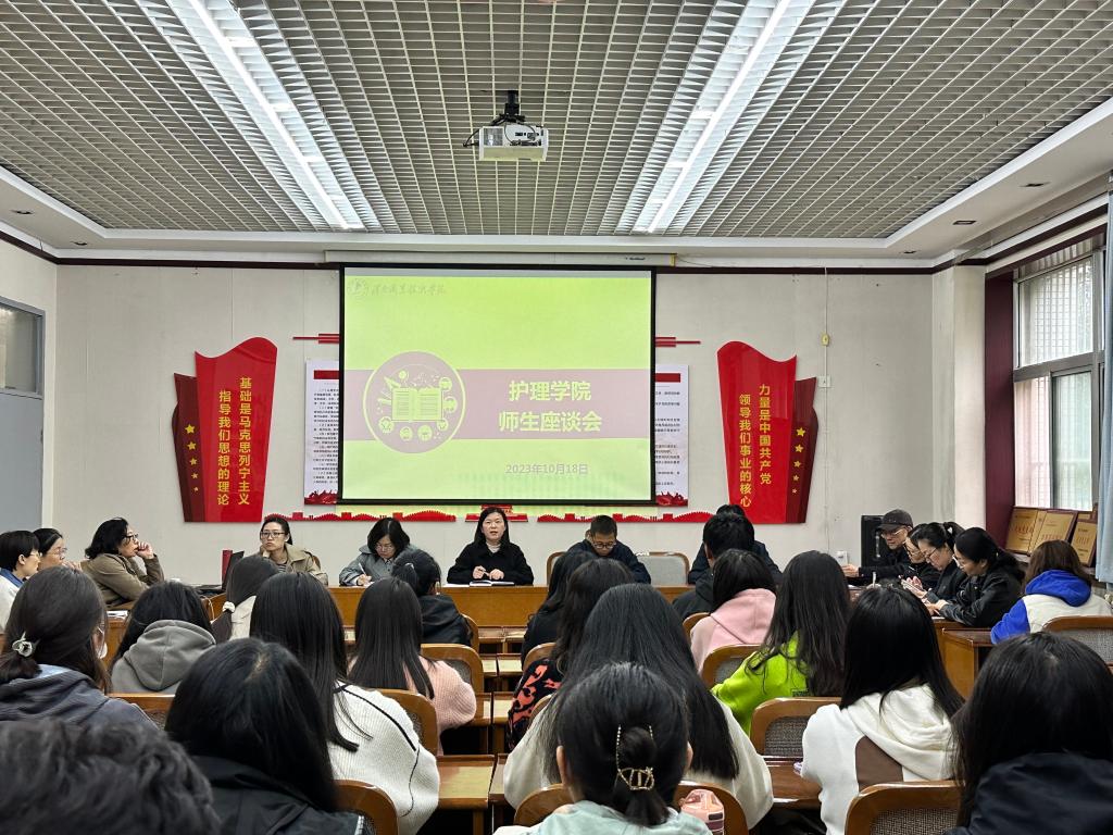 为切实践行“以学生为中心”的教学理念,深入了解学生生活学习状态和需求,充分听取学生意见建议,搭建良好的师生沟通桥梁,助推“课堂革命”取得实效,澳门网投唯一官网于10月18日下午在医训南楼第二会议室召开了师生座谈会。澳门网投唯一官网党总支副书记周梦花、教学科副科长孙会娟、学生管理科副科长姚飞、各教研室主任和67名学生代表参会。会议由周梦花主持。