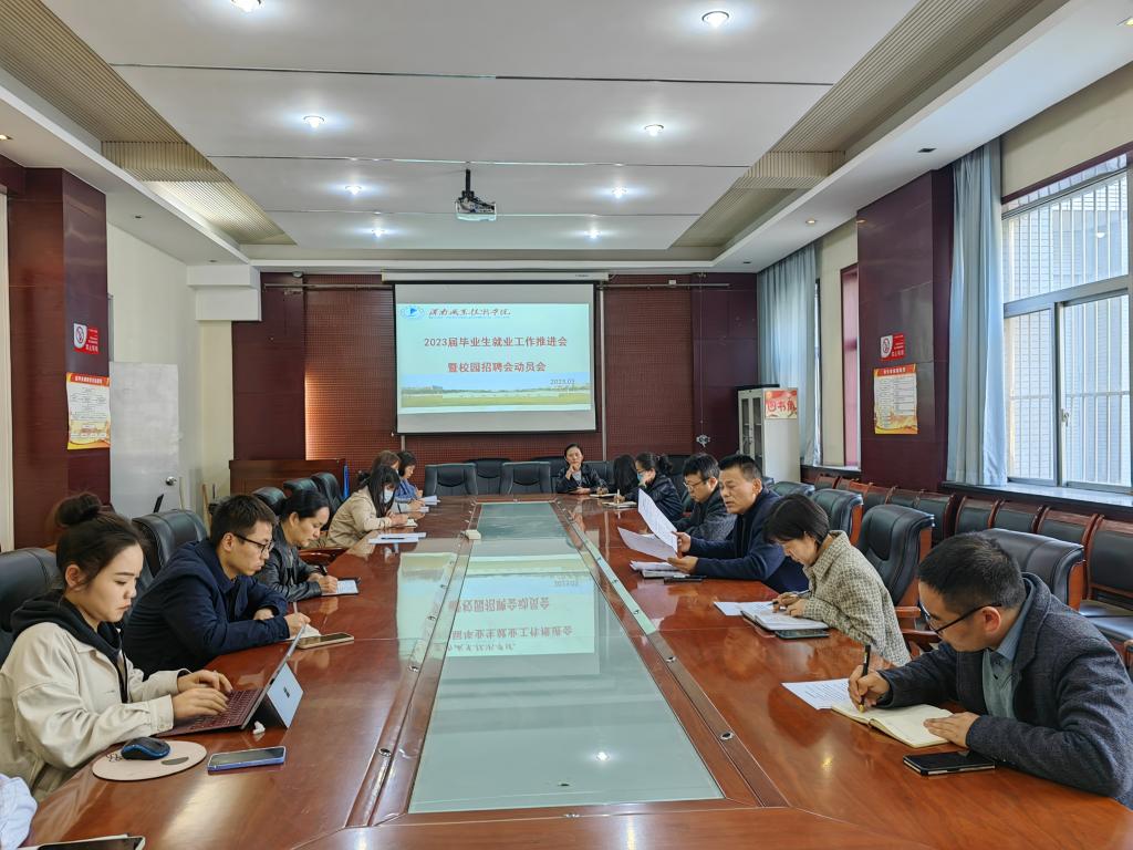 3月27日下午16:20,澳门网投唯一官网在医训楼第一会议室召开了2023届毕业生就业工作推进会暨校园招聘部署安排会。澳门网投唯一官网党总支书记吴运胜、院长张成和班子其他成员、各科室负责人以及2023届、2024届毕业班辅导员、班主任参加了会议。