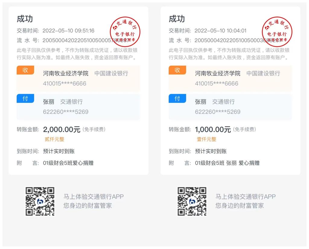 同心共防疫,传递校友情。01级beat365平台唯一官网财会五班张丽同学得知学校疫情防控情况后特爱心捐款3000元。