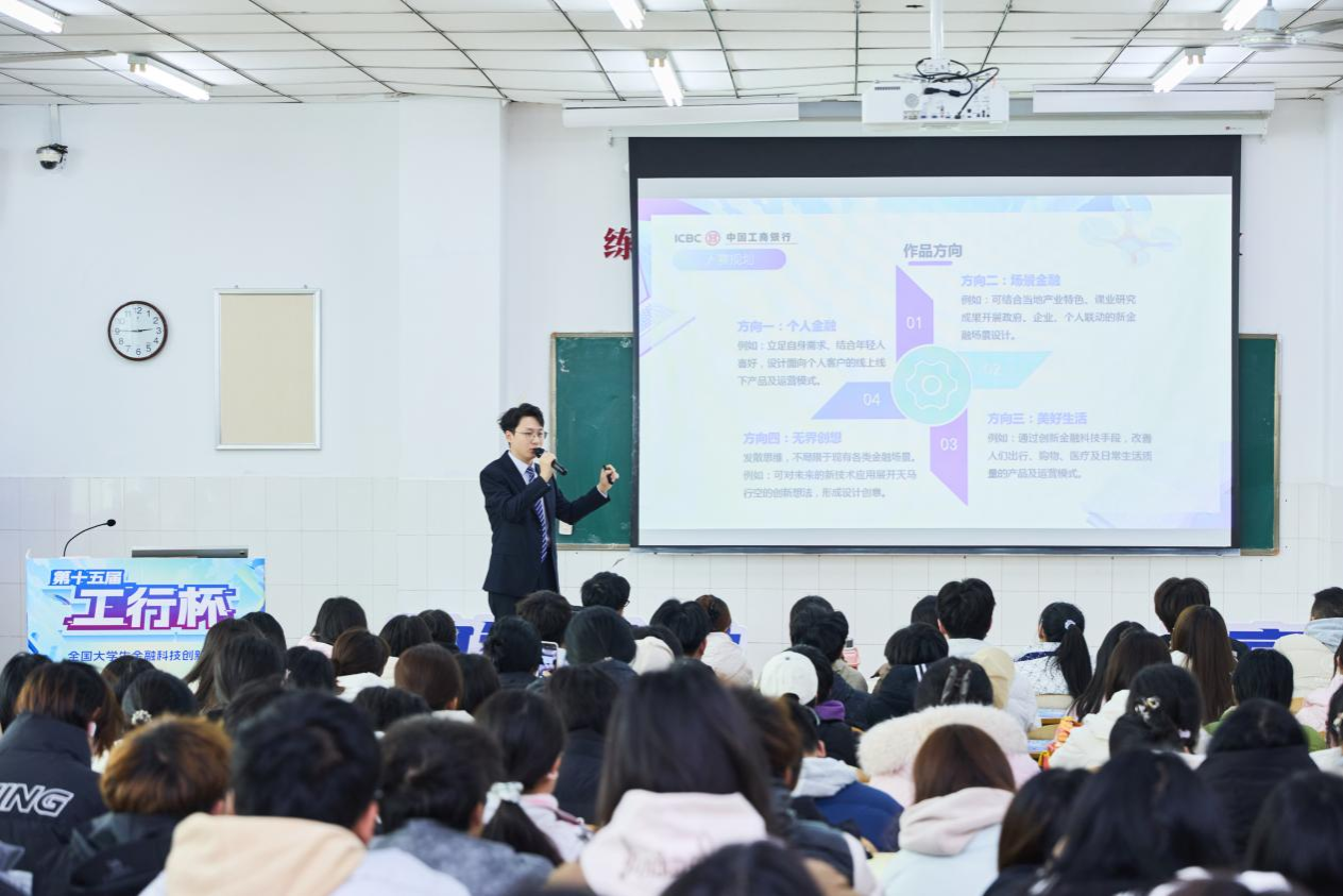2024年12月12日下午,beat365平台唯一官网在英才校区E309召开第十五届“工行杯”全国大学生金融科技创新大赛宣讲会。此次宣讲会由中国工商银行郑州分行金融科技部李炬昊经理主讲,beat365官网金融科技教研室主任范聪颖主持,部分学院老师及金融学、投资学等专业200余名本科生参会。